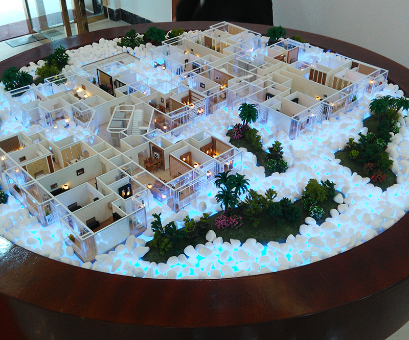 采用透明亞克力制作、內(nèi)部按比例制作家私布局、達到真實仿真效果。