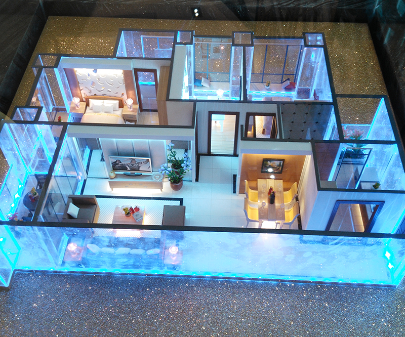 采用透明亞克力制作、內(nèi)部按比例制作家私布局、達(dá)到真實(shí)仿真效果。